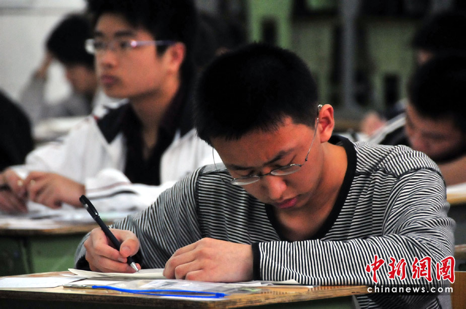 6月7日,為期兩天的2010年普通高等學(xué)校招生全國統(tǒng)一考試開考,全國將有957萬考生走進(jìn)考場。圖為考生在答題。中新社發(fā) 李向雨 攝