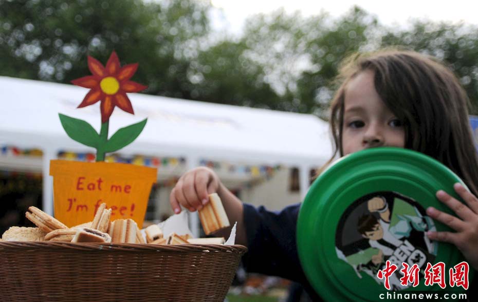 當(dāng)?shù)貢r間2010年6月6日,英國倫敦舉行卡姆登綠色市集(Camden Green Fair),這是英國倫敦每年環(huán)保領(lǐng)域的“重頭戲”。本屆市集的主旨是要喚起大眾對環(huán)境問題的關(guān)注,選擇更加可持續(xù)發(fā)展的生活方式。據(jù)活動主辦方預(yù)計(jì),本屆市集將吸引來自英國各地和世界各國的2萬多人參加。圖為免費(fèi)的素點(diǎn)心深受小朋友喜愛。Fiona/攝 Fiona 馬小剛/文