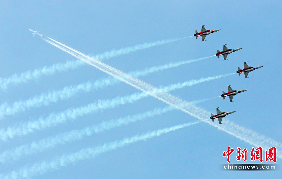 2010年柏林國(guó)際航空展于當(dāng)?shù)貢r(shí)間6月8日在德國(guó)柏林舍內(nèi)費(fèi)爾德機(jī)場(chǎng)開(kāi)幕。9日,瑞士飛行表演隊(duì)在航展上演了精彩的飛行表演。圖片來(lái)源:中國(guó)新聞網(wǎng)