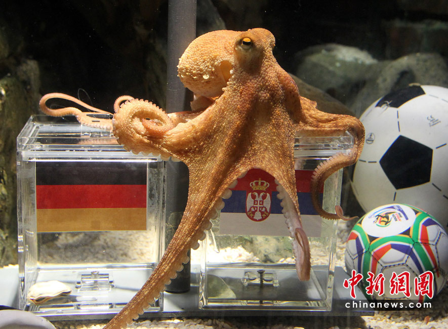當?shù)貢r間6月15日,德國北部,水族館里的海洋生物爭搶填滿飼料的足球。