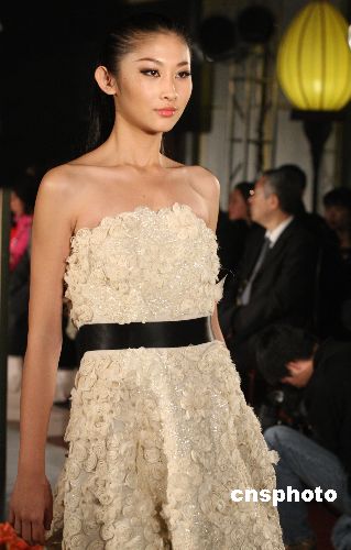 11月12日晚,MOISELLE (慕詩(shī)國(guó)際集團(tuán))慶祝成立10周年之際,特別選址于具有濃郁中國(guó)文化氣息的北京中國(guó)會(huì)(China Club) 舉行07年秋冬系列時(shí)裝發(fā)布會(huì),MOISELLE素來(lái)以時(shí)尚設(shè)計(jì)、優(yōu)質(zhì)布料、精致造工及高雅風(fēng)格見(jiàn)稱(chēng),塑造出典雅及女性化的風(fēng)格,圖為模特在U形天橋上完美演繹 MOISELLE‘07秋冬系列作品。中新社發(fā) 錢(qián)興強(qiáng) 攝