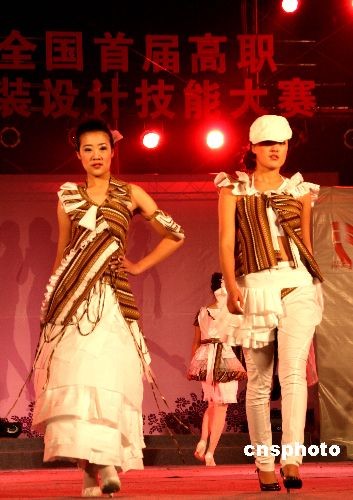 12月11日晚,中國高職院校服裝設(shè)計(jì)技能大賽在揚(yáng)州舉行。共有來自江蘇、安徽、河北、江西、湖北、廣西、北京、重慶、新疆、內(nèi)蒙古等10多個(gè)省市自治區(qū)的53所高職高專院校設(shè)計(jì)作品911件,經(jīng)專家組初評,有64個(gè)系列作品入圍決賽,最終評選出2個(gè)金獎(jiǎng)、12個(gè)銀獎(jiǎng)、24個(gè)銅獎(jiǎng)和最佳效果圖獎(jiǎng)、最佳工藝獎(jiǎng)等6個(gè)單項(xiàng)獎(jiǎng)。中新社發(fā) 崔佳明 攝