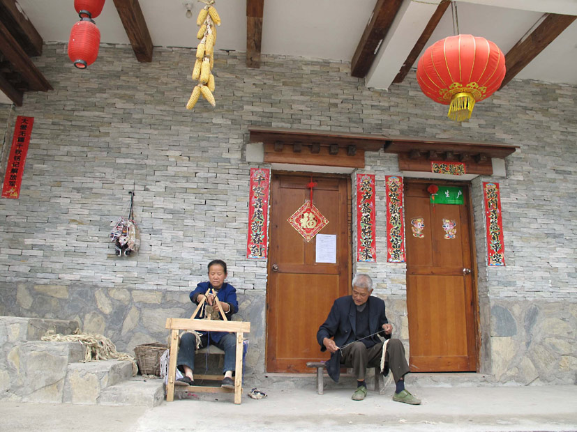 在擂鼓鎮(zhèn)貓兒石村重新建設的“吉娜”羌寨,村民在新居過上了新生活。這里將依托北川新縣城-擂鼓-曲山新經濟走廊成為旅游節(jié)點。北川縣的擂鼓鎮(zhèn)在5.12地震中遭到破壞,全鎮(zhèn)30個行政村一個社區(qū),18327人全部受災,其中630人遇難或失蹤,2200人不同程度受傷,90%以上的房屋嚴重損毀無法居住,大量羌族傳統(tǒng)建筑遭到破壞。作為中國唯一的羌族自治縣,北川縣政府對羌族文化和建筑的進行了重點重建和保護。中新社發(fā) 路梅 攝