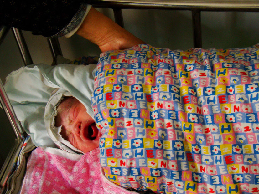 4月23日,在汶川大地震極重災(zāi)區(qū)什邡市婦幼保健院的板房醫(yī)院內(nèi),震后有傷亡家庭再生育的婦女王堯芳產(chǎn)下了一個健康的小寶寶。記者了解到,王堯芳家住什邡市紅白鎮(zhèn),在該鎮(zhèn)做裁縫。她11歲的兒子小明在去年的“5.12”汶川大地震中遇難。中新社發(fā) 肖龍聯(lián) 攝