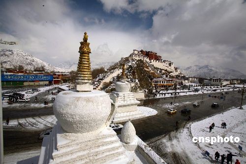 圖為雪后雄偉壯麗的布達(dá)拉宮。2月19日晚至20日中午,西藏拉薩下起了2008年春節(jié)后的首場(chǎng)大雪。中新社發(fā) 那勇順 攝