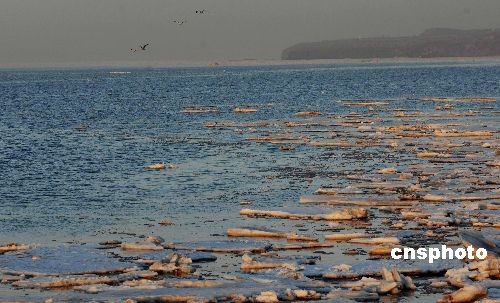 2月27日傍晚,在遼寧大連北部海域夏家河子,晚霞里海面漂浮著大片冰凌。場面十分壯觀。當(dāng)日,該市最低氣溫零上2度,受氣溫回升影響,該市北部海域封凍的冰層已開始融化。中新社發(fā) 劉德斌 攝