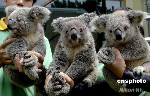 5月10日,以繁育技術一流著稱的廣州市香江野生動物世界,擁有無數(shù)的動物媽媽,人類的母親要過節(jié),動物的媽媽當然也要過節(jié)。香江為給動物界繁育做出貢獻的廣大動物媽媽過一個快樂的節(jié)日,精心準備各種活動,對部分英雄媽媽還別開生面地舉行各式各樣的活動為她們送去節(jié)日的祝福。圖為雙胞胎的樹熊(考拉)母親淘淘及他的孩子,這也是第二代中國樹熊(考拉)家族的首次合影全家福。中新社發(fā) 劉衛(wèi)勇 攝