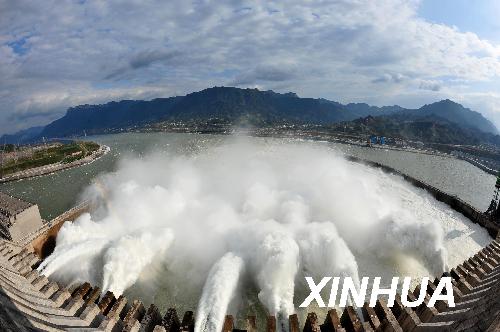 11月7日,江水通過三峽泄洪大壩下泄。當日,三峽工地久雨初晴,三峽工程開啟多個泄洪深孔及溢流表孔泄洪。從10月23日開始,長江上游持續(xù)降雨,局部地區(qū)出現(xiàn)暴雨天氣,長江三峽出現(xiàn)冬汛。新華社記者 安希雅 攝