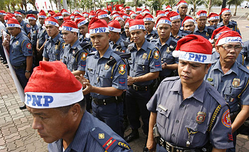 這項(xiàng)活動(dòng)當(dāng)天啟動(dòng)后,大約200名菲律賓警察將開始頭戴圣誕老人的帽子在商場等人流量大的地區(qū)執(zhí)勤,以使他們?cè)谑フQ節(jié)期間的巡邏能更加醒目,從而更加有效地防范犯罪活動(dòng)。