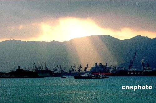 1月9日早晨,江蘇連云港云臺山上空出現(xiàn)了美麗壯觀的太陽光柱現(xiàn)象。初升的太陽透過厚厚的云層,打開一道“天窗”,周圍產生了強烈的七彩光暈,照射著東方大港港口,呈現(xiàn)出酷似舞臺聚光燈的光束效果,與碧綠的海水相映,形成了奇幻的海天意境和瑰麗色彩。中新社發(fā) 王春 攝