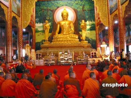 十一月三日上午,來自中國以及東南亞各國的一百零八位佛教界高僧大德,在位于西雙版納州景洪市,共同為新近落成的中國最大的南傳佛教寺院勐泐大佛寺開光,近萬名中外賓客和信眾前往觀禮。中新社發(fā) 甘娜 攝