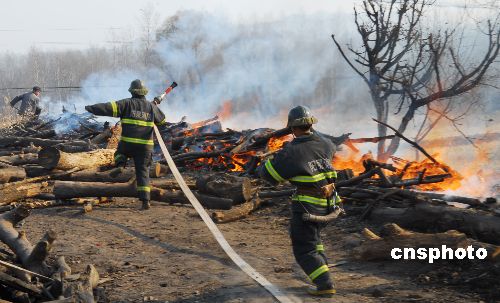 2007年11月10日,位于山西省盂縣一家廢舊木材回收站突然發(fā)生火災,盂縣消防大隊接警后迅速趕赴現(xiàn)場撲救,經(jīng)過近1個多小時的緊急撲救,終于將大火撲滅;馂奈丛斐扇藛T傷亡,并成功防止了火勢向周圍民房和森林的蔓延。目前,火災原因和損失正在調(diào)查之中。中新社發(fā) 程瑜 攝