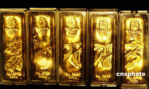 2007年11月10日,北京金博會(huì)上的全套“北京奧運(yùn)金”本色系列組合成一條完整的龍亮相。據(jù)稱(chēng)“龍尾”奧運(yùn)金條將在本月陸續(xù)在全國(guó)上市!氨本⿰W運(yùn)金”是世界上第一套具有奧運(yùn)概念的紀(jì)念金條,其每組的含金量均為99.99%,按重量分為50克、100克、500克和1000克四種規(guī)格,每組限量發(fā)行2008公斤。中新社發(fā) 馬健 攝