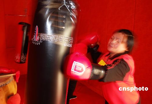 2007年11月14日,勞教人員在河南省女子勞教所的宣泄室內(nèi)用力擊打沙袋,宣泄心中的苦惱。宣泄室是該所勞教人員心理矯治中心新開設(shè)的心理治療項(xiàng)目,室內(nèi)的墻壁都用厚厚的海棉包裹,并配備了沙袋、鑼鼓等供勞教人員使用,針對一些內(nèi)向的學(xué)員,起到了很好地的心理治療作用。據(jù)介紹,宣泄室只是心理治療的一個(gè)環(huán)節(jié),只有與其他的心理矯治手段相配合才能真正緩解勞教人員的心理壓力,樹立起重樹新生的信心。中新社發(fā) 馬健 攝