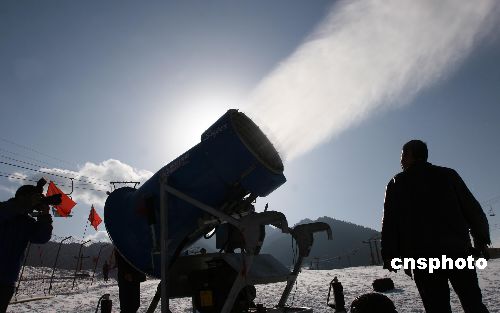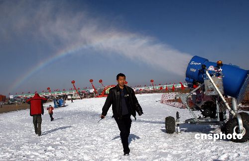 十一月十七日,新疆烏魯木齊某滑雪場工作人員正在操作造雪機(jī),對即將投入使用的雪道進(jìn)行人工造雪。當(dāng)天,2007新疆冬季冰雪旅游啟動(dòng)儀式在該滑雪場舉行。新疆冬季漫長,冰雪資源極為豐富,截至目前已建成二百一十多家滑雪場和冰雪娛樂點(diǎn)。中新社發(fā) 劉新 攝