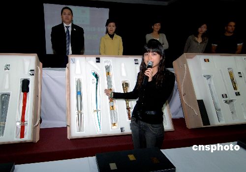 十一月二十一日,國際奧委會奧林匹克珍藏品中國巡展.福州站開箱暨點交儀式在福州國際會展中心舉行。儀式后奧林匹克文化傳播使者湯柳柳向在場的新聞媒體記者介紹歷屆奧運會火炬珍品。國際奧委會奧林匹克珍藏品中國巡展將于十一月二十五日在福州展出,包括歷屆奧運會的獎牌等共731件珍品將亮相。中新社發(fā) 劉可耕 攝