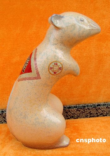 2008年是中國(guó)傳統(tǒng)的鼠年,老鼠在中國(guó)大部分地區(qū)被認(rèn)為是財(cái)神的象征。江西景德鎮(zhèn)的陶瓷藝術(shù)家們?cè)O(shè)計(jì)出各種寓意深刻、造型可愛的鼠年生肖瓷,目前這些生肖瓷已在各商場(chǎng)銷售,受到市民歡迎。中新社發(fā) 石衛(wèi)明 攝