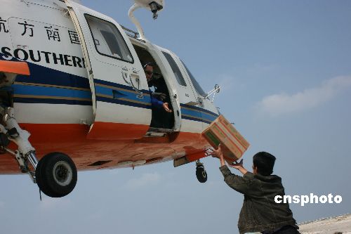 圖為救助飛機(jī)在西沙向被困漁民空投食物。中新社發(fā) 張鑫華 攝