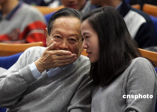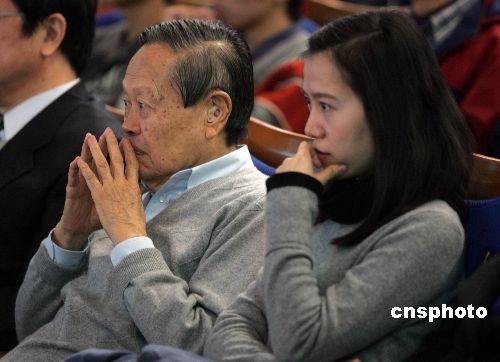 12月3日,數(shù)學大師陳省身逝世三周年紀念大會暨《陳省身與中國數(shù)學》新書首發(fā)儀式在天津舉行。諾貝爾獎獲得者、著名華人學者楊振寧攜妻子翁帆出席紀念活動。圖為楊振寧夫婦聆聽陳省身先生女婿、著名物理學家、香港科技大學校長朱經武院士的主題演講,演講題為《陳省身先生與我》。中新社發(fā) 祁小龍 攝