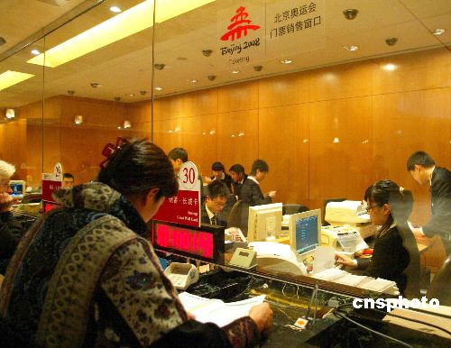 12月10日,2008年北京奧運(yùn)會(huì)面向境內(nèi)公眾門票銷售第二階段再次啟動(dòng)。每人憑本人身份證件僅限提交一份訂單,每張訂單限購(gòu)兩個(gè)體育比賽場(chǎng)次的門票,最多可申購(gòu)8張門票。官方票務(wù)網(wǎng)站將于2007年12月30日24時(shí)停止接受預(yù)訂單,中國(guó)銀行指定門票代售網(wǎng)點(diǎn)將于2007年12月30日17時(shí)停止接受預(yù)訂單。圖為民眾在北京的一家中國(guó)銀行門票代售點(diǎn)進(jìn)行預(yù)訂。中新社發(fā) 富田 攝