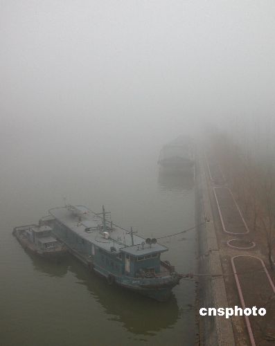 圖為濃霧彌漫下的大運(yùn)河山東臺兒莊段。12月20日,大運(yùn)河山東臺兒莊航段濃霧彌漫,能見度不足20米,到下午能見度不足百米,萬年船閘和臺兒莊船閘從今晨開始全線停止放船,濃霧給船隊通航和船民生活帶來不便。中新社發(fā) 高啟民 攝
