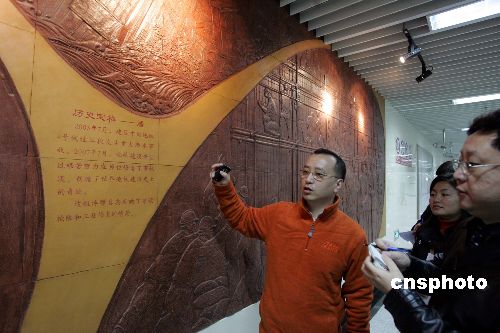 十二月二十三日,上海軌道交通4號線全線貫通進入最后試運營演練,記者在南浦大橋站,看到一幅巨型浮雕,真實描繪了2003年7月,4號線在建過黃浦江段時,發(fā)生重大滲水事故,后來地鐵建設(shè)者奮力搶修、原位修復(fù)的過程。據(jù)悉,該重大滲水事故,曾引起海內(nèi)外媒體廣泛關(guān)注。如今,堪稱上海軌道交通“金環(huán)”的4號線貫通在即,新浮雕讓參觀者感嘆上海人務(wù)實求真。中新社發(fā) 潘索菲 攝