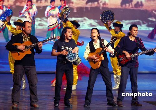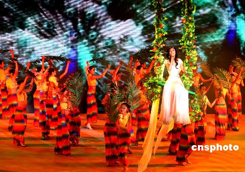 2007年12月31日晚,中國中央電視臺在北京舉辦2008年元旦雙語(漢語、英語)晚會,中國及日本、韓國、泰國、馬來西亞、新加坡、印度等國家的藝術(shù)家同臺獻(xiàn)藝,歡度新年佳節(jié),他們以歌曲、舞蹈、雜技、魔術(shù)、服裝秀、戲曲等藝術(shù)形式,祝福各國人民愉快。中新社發(fā) 宋吉河 攝