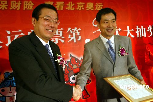 一月四日,著名表演藝術(shù)家濮存昕受邀為“擁有人保財險,喜看北京奧運——萬張奧運門票大抽獎”活動進行第三次抽獎。在活動上,濮存昕被北京2008年奧運會保險合作伙伴中國人保財險聘為公司奧運形象大使。他高興地表示,自己已經(jīng)提出申請成為北京殘奧會志愿者, 希望參與更多的社會公益事業(yè)。中新社發(fā) 楊可佳 攝