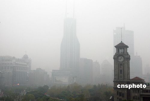 圖:上海出現(xiàn)強(qiáng)霧 氣象臺(tái)發(fā)布大霧紅色預(yù)警