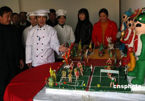 圖:河南禹州廚師制作面塑作品迎奧運(3張)