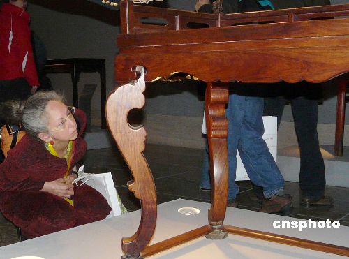 2008年1月9日,“2008中國古典家具精品展暨國際學術研討會”在北京拉開帷幕。這是首次舉辦專門針對中國古典家具研究與展示的國際性活動,十幾位海內外古典家具研究學者和專家,將就中國古典家具的歷史與現(xiàn)狀、傳承與發(fā)展等問題進行深入的探討,同時集中展出了近60件來自海內外著名藏家的明清家具頂尖精品。中新社發(fā) 金城 攝