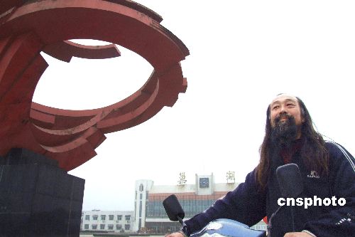 1月10日,創(chuàng)兩項吉尼斯世界紀錄——“殘疾人騎自行車穿越羅布泊之最”和“殘疾人騎自行車游中國之最”的殘疾人劉郁寶單車來到安徽巢湖市。他已行經(jīng)全國近千座城市,行程六萬公里。他此次來巢湖的目的是,宣傳祖國和平統(tǒng)一 ,呼吁全社會關心和支持殘疾人事業(yè),并為建立“中華史料庫”搜集史料。中新社發(fā) 張發(fā)平 攝