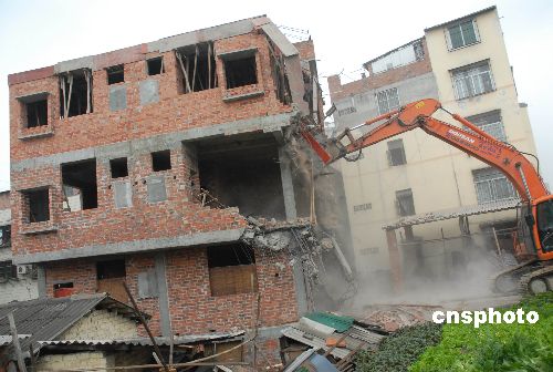 一月十五日,廣西南寧市西鄉(xiāng)塘區(qū)近八百名執(zhí)法人員對該轄區(qū)內(nèi)四戶違法建設(shè)樓房進行拆除,拆除違法建筑面積達兩千平方米。據(jù)悉,目前南寧市私房違法搶建現(xiàn)象較為嚴重,對城市的規(guī)劃造成了一定影響,市政府對此采取強拆措施。中新社發(fā) 何卓姿 攝