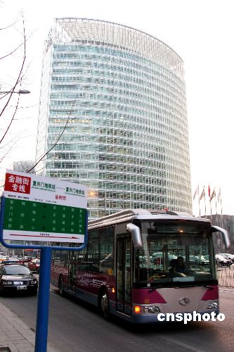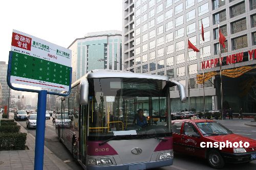 1月15日,金融街免費(fèi)專線公交開通,以方便區(qū)域內(nèi)8萬從業(yè)人員出行。金融街專線全程共設(shè)復(fù)興門地鐵站至辟才胡同7個站點(diǎn)。每日早7:30至9:00及16:30至19:00點(diǎn)發(fā)車,節(jié)假日停駛。中新社發(fā) 富田 攝