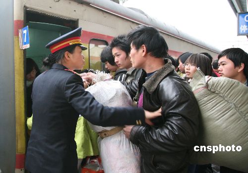 1月23日起,為期四十天、世界上規(guī)模最大的人口遷移——中國(guó)春運(yùn)即將登場(chǎng)。據(jù)知,南昌鐵路局2008年春運(yùn)將運(yùn)送1186萬(wàn)游子歸鄉(xiāng),比2007年增加108萬(wàn)人。中新社發(fā) 吳慶才 攝