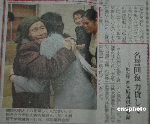 八十歲高齡的海南“慰安婦”受害者原告代表黃有良老人一月十九日深夜從東京返回?。老人披露,二審庭審時,法官除詳細地了解老人受凌辱的事實經(jīng)過外,還首次詢問“慰安婦”經(jīng)歷給原告后來六十多年人生帶來的不幸尤其是造成的精神創(chuàng)傷。二00一年七月,黃有良等八名海南“慰安婦”受害幸存者向日本政府提起訴訟,要求日本政府公開道歉還其清白,并給予相應賠償。二00六年八月一審敗訴,同年底原告再次上訴。中新社發(fā) 王辛莉 攝