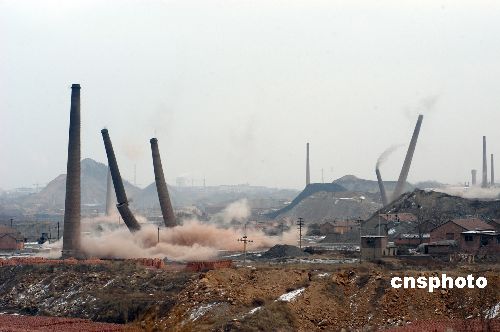 加大節(jié)能減排力度 濰坊同時爆破27根煙囪