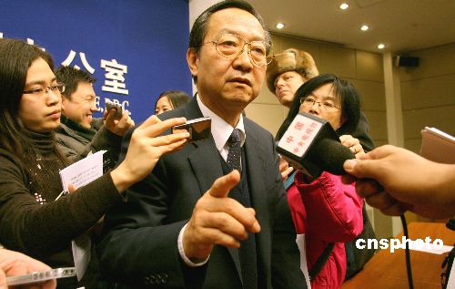 1月22日,國務院新聞辦舉行新聞發(fā)布會,國家安全生產監(jiān)督管理總局局長李毅中、監(jiān)察部副部長王偉,公布幾起重特大事故的調查處理結果,并答記者問。李毅中表示,不是所有事故背后都有權錢交易等腐敗現(xiàn)象,但是我們把調查腐敗現(xiàn)象作為事故查處的必備程序。今天通報的5起事故,湖南省鳳凰縣堤溪沱江大橋、山西省臨汾市蒲縣蒲鄧煤礦,這兩起事故背后都有腐敗問題。圖為李毅中在回答記者的提問。中新社發(fā) 張勤 攝