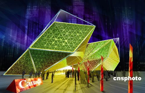 一月二十二日,加拿大政府在上海正式與中方簽約,參展二0一0年上海世博會,并同步公布加拿大館創(chuàng)意設(shè)計方案。上海世博會加拿大館的主題為“充滿生機(jī)的宜居住城市:包容性、可持續(xù)發(fā)展與創(chuàng)造性”。該館位于黃浦江東側(cè)的C片區(qū),占地六千平方米。針對參展上海世博會,加拿大政府的總預(yù)算將達(dá)四千五百萬加元。效果圖上的加拿大館宛如“綠寶石”。中新社發(fā) 世博局 供圖