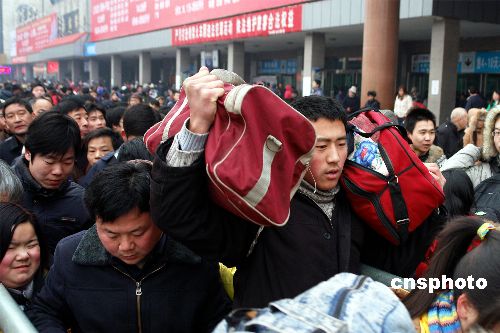 一月二十三日,在河南鄭州火車站進站口,提著大小包裹的打工人員秩序進站。鄭州火車站春運第一天,三日內的車票全部售完,作為中國鐵路大樞紐的鄭州,已提前迎來客流高峰。中新社發(fā) 慎重 攝
