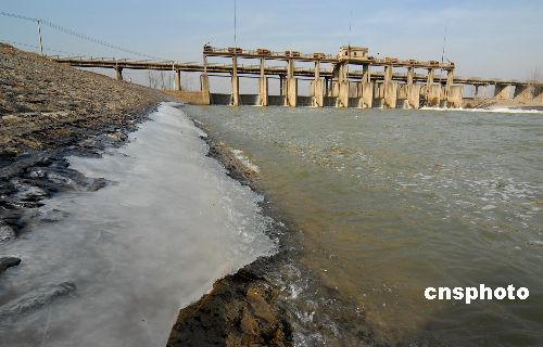 1月24日,京杭運(yùn)河節(jié)制閘堤岸出現(xiàn)冰凍。據(jù)氣象部門披露:自1月20日以來(lái),山東棗莊普降小到中雪,氣溫降到零下4-5℃左右,最低氣溫達(dá)零下8.2℃,京杭運(yùn)河山東臺(tái)兒莊航道、運(yùn)河節(jié)制閘內(nèi)出現(xiàn)多年未有的淌凌和冰凍,最厚冰層接近8厘米。中新社發(fā) 高啟民 攝