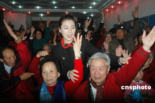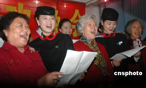 2008年1月24日,位于海口市的海南快樂夕陽敬老園舉辦“敬老愛老迎春聯(lián)歡晚會”,來自全國各地在該園休閑過冬的150多名“候鳥老人”與海南航空的20多名乘務員歡聚一堂,互送新年禮物和互動表演文藝節(jié)目,共同歡度了一個難忘的夜晚。中新社發(fā) 善平 攝