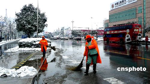 1月26日,江蘇揚(yáng)州干部群眾一起上街清掃路面積雪,開(kāi)辟出一條條干凈、通暢的道路,保證了市民正常生活出行。據(jù)江蘇省氣象局分析,從1月25日夜到29日,江蘇將出現(xiàn)持續(xù)性降雪天氣,較大降雪出現(xiàn)在27日至28日,氣溫持續(xù)偏低,并會(huì)出現(xiàn)冰凍。中新社發(fā) 崔佳明 攝