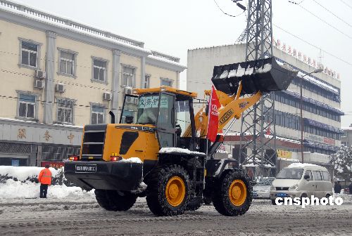 1月30日,連日的暴雪致使省城道路上堆積了大量的積雪,由于氣溫低,道路結(jié)冰,給安徽合肥交通帶來了很大的影響,為了使道路早日暢通,方便車輛和行人的出行,全市廣大干群、環(huán)衛(wèi)工人和大量市民紛紛走上街頭義務(wù)鏟雪,還有企業(yè)和個(gè)人把自己用于銷售的挖掘機(jī)和推土車改裝成鏟雪車開上街頭,義務(wù)幫助鏟雪。據(jù)悉,到目前為止,瑤海區(qū)境內(nèi)參加義務(wù)鏟雪的工程機(jī)械車輛共有9輛。中新社發(fā) 解琛 攝