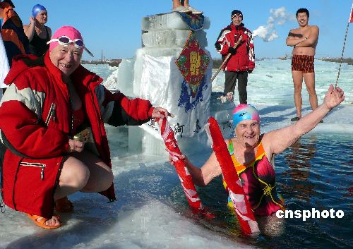 圖:中俄健兒在界江冬泳聯(lián)誼