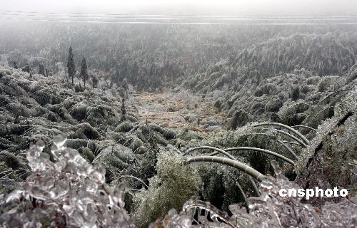自1月16日以來(lái),受冷空氣南下和低空切變南壓影響,福建龍巖長(zhǎng)汀縣持續(xù)低溫陰冷,山區(qū)大范圍出現(xiàn)凍雨和雨夾雪天氣,截至2月2日上午嚴(yán)重冰災(zāi)已造成長(zhǎng)汀縣直接經(jīng)濟(jì)損失四點(diǎn)二五億元。目前,該縣仍有六個(gè)鄉(xiāng)鎮(zhèn)、五十七個(gè)村、二百個(gè)自然村尚未恢復(fù)正常供電。中新社發(fā) 黃啟元 攝