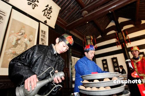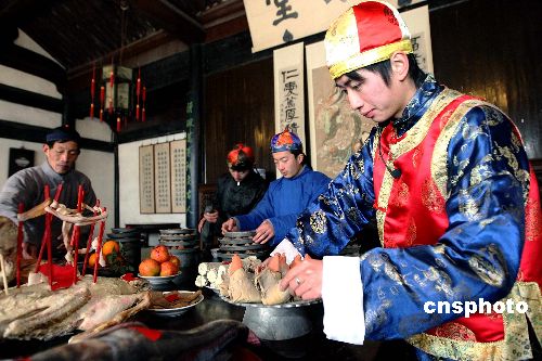 2月8日,紹興魯迅故里舉行“祝!奔漓牖顒(dòng)。當(dāng)日是農(nóng)歷正月初二,浙江紹興魯迅故里在周家老臺(tái)門(mén)模仿魯迅小說(shuō)《祝!返膱(chǎng)景,從正月初一至初五每天進(jìn)行紹興傳統(tǒng)年俗“祝!眻(chǎng)景表演。紹興的年俗“祝福”因魯迅小說(shuō)而名揚(yáng)天下,浙江省將紹興魯迅故里“祝!倍槲┮坏拇汗(jié)保護(hù)示范地。中新社發(fā) 袁云 攝