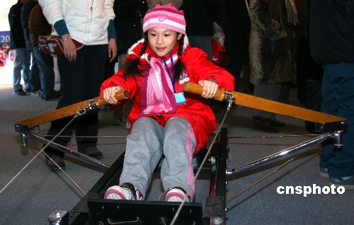 2月9日,農(nóng)歷大年初三,在龍?zhí)稄R會(huì)上可以免費(fèi)體驗(yàn)北京2008奧運(yùn)會(huì)的28個(gè)體育項(xiàng)目,本屆龍?zhí)稄R會(huì)突出迎接北京奧運(yùn)和非物質(zhì)文化遺產(chǎn)保護(hù)兩大主題。圖為在奧運(yùn)體驗(yàn)區(qū)內(nèi)小朋友正在體驗(yàn)皮劃艇項(xiàng)目。中新社發(fā) 富田 攝
