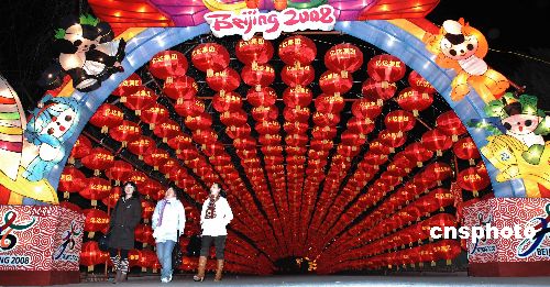2月8日晚,眾多市民和游人紛紛來到大連勞動(dòng)公園欣賞奧運(yùn)主題的彩燈。以“輝煌奧運(yùn)”為主題的2008迎春游園燈會(huì)2月7日至2月24日在大連勞動(dòng)公園舉行。本屆迎春游園燈會(huì)由“喜迎奧運(yùn)”、“祖國繁榮”、“浪漫大連”、“金鼠送福”、“童話故事”5個(gè)系列組織50余盞大型燈組組成。除設(shè)燈飾展區(qū)外,還設(shè)有民俗表演區(qū)、南北風(fēng)味小吃區(qū)、游藝游樂區(qū)、民間技藝展示區(qū)和地面焰火表演區(qū)。中新社發(fā) 劉德斌 攝