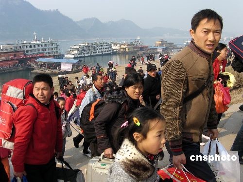 圖:長江三峽出現(xiàn)今年春運最高峰